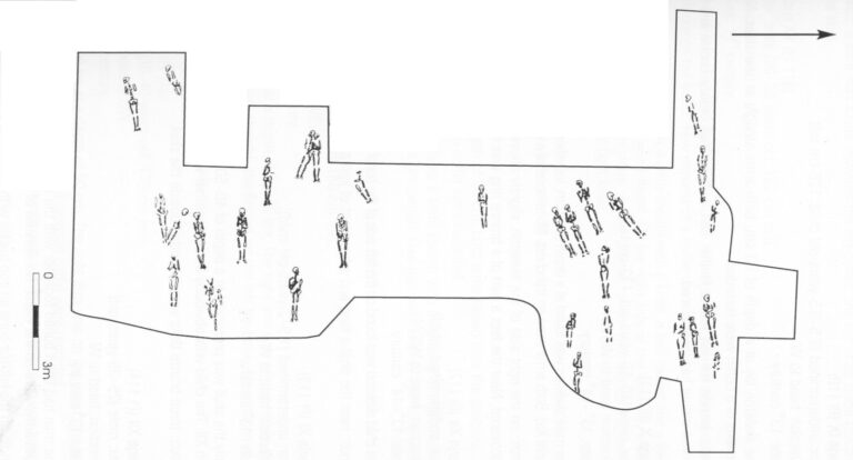 Sõdaderohke 13. sajand kajastus ka Karja luustikes. Üks 25-35-aastaselt surnud mees oli saanud korduvalt haavata, tõenäoliselt lähivõitluses, osa haavadest oli küll paranenud, kuid mitte korralikult. Alla 40-aastane mees oli tapetud selja tagant saadud löögiga pähe. Kõige dramaatilisem oli olnud ühe seitsmeaastase lapse surm – tema kolju oli sõna otseses mõttes löödud pooleks terava eseme, tõenäoliselt mõõga või kirvega.