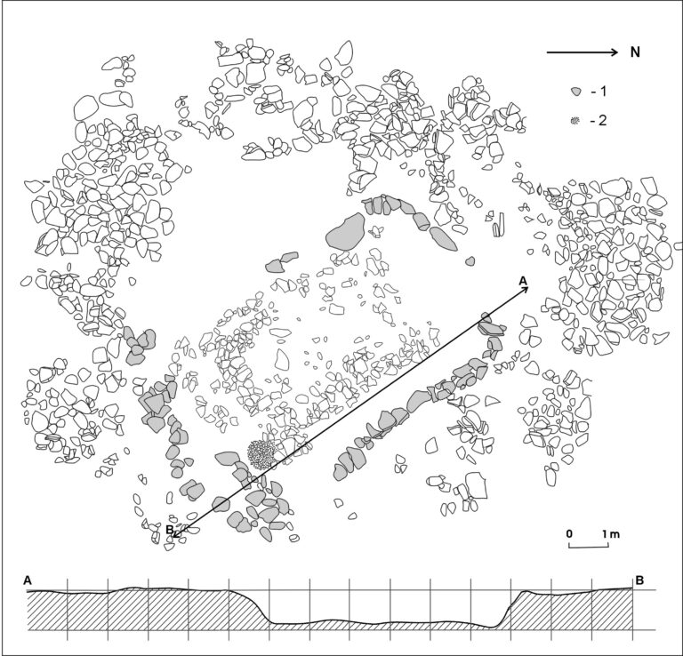Süvendit ümbritses madal paekividest kuivmüür ning selle mõlemas lühemas otsas oli serv laugjam – siin oli tegu sissepääsudega. Ühes nurgas oli kividega ümbritsetud postikoht, teises nurgas tulease, mille juures süvendi seinad olid mätsitud saviga. Süvendi põhjas oli hästi säilinud paeplaatidest põrand.