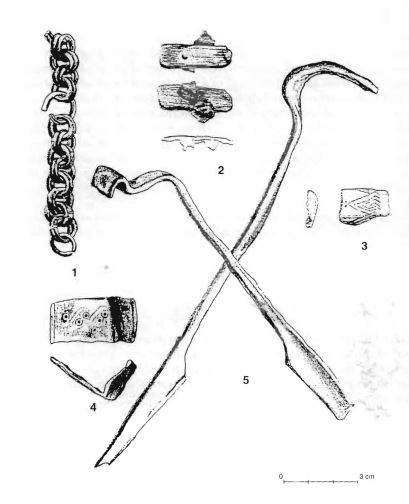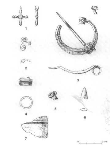 Selle kõrval paiknes teine sarnane kalme, mille läbimõõt oli pea sama ehk 3.8 m, kuid osa müürist oli hävinud ilmselt just eelmainitud kalme ehitamise tõttu. Kuigi kalme ümber olnud paesillutise alt tulid ka ühed käärid välja, olid siiski enamik leide seal samuti kalme keskosas. Sealt leitud sulanud rinnakee ja ehete katkete põhjal on arvatud, et sinna maetu oli naine 10. sajandist või 11. sajandi algusest. Lõhutud ringmüüriga oli ka ühe 11. sajandi või 12. sajandi alguses maetud mehe kalme, kelle jaoks rajati ka ca 3 m läbimõõduga kiviring. Kalme keskosast u. 1 meetri laiuselt söestunud laigult leiti ohtralt põlenud esmeid, nagu näiteks odaotsa tipp, luutükikesi ja keraamikakilde, ristikujuline ripatsi ning hoburaudsõle fragmente. Just viimase kahe järgi kalme ka dateeriti.