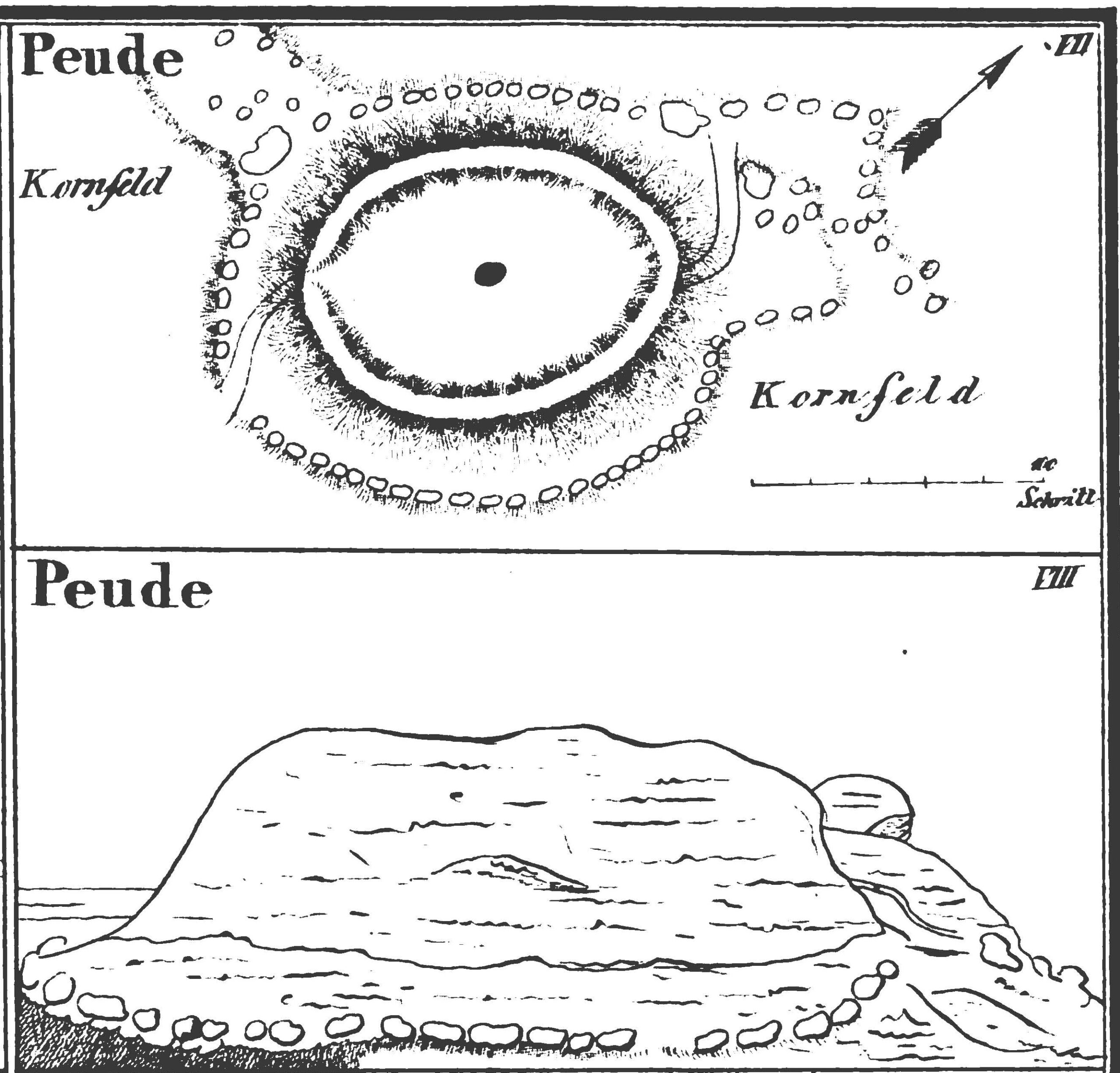 1842. aasta joonis Pöide maalinnast, kus on märgitud ka linnust ümbritsenud teine ringvall.