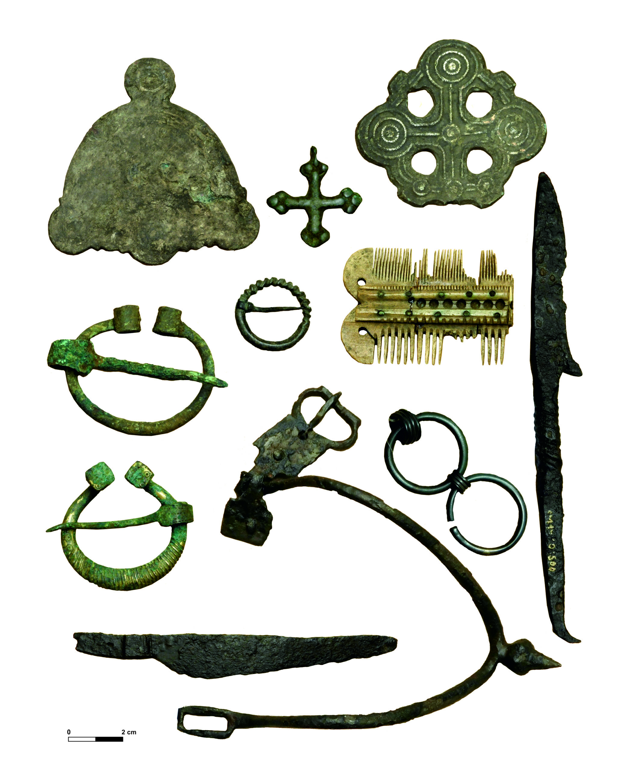 12.-13. sajandi leide Pöide maalinnast – nuga, kannus, viskeoda ots, kamm ja mitmesuguseid ehteid.