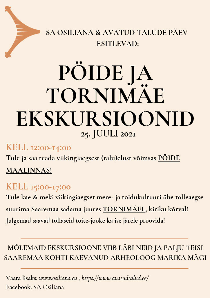 MIS? Avatud talude päeval on avatud ka viikingiaegne talumaailm! Ehk mitte küll otse talud, aga Pöide linnus, mis oli viikingiajal oluliseks keskuseks Saaremaal. Linnust on arheoloogiliselt kaevatud ning üht-teist on teada selle ajaloost nii viikingi- kui ka keskajal.