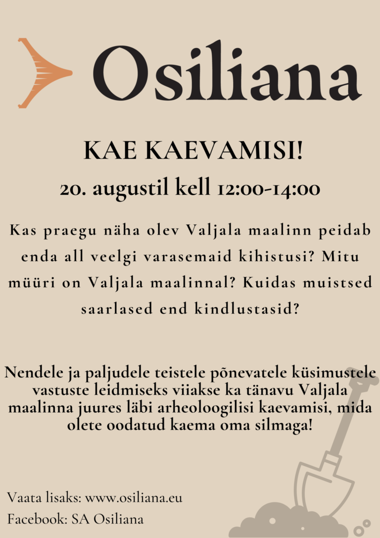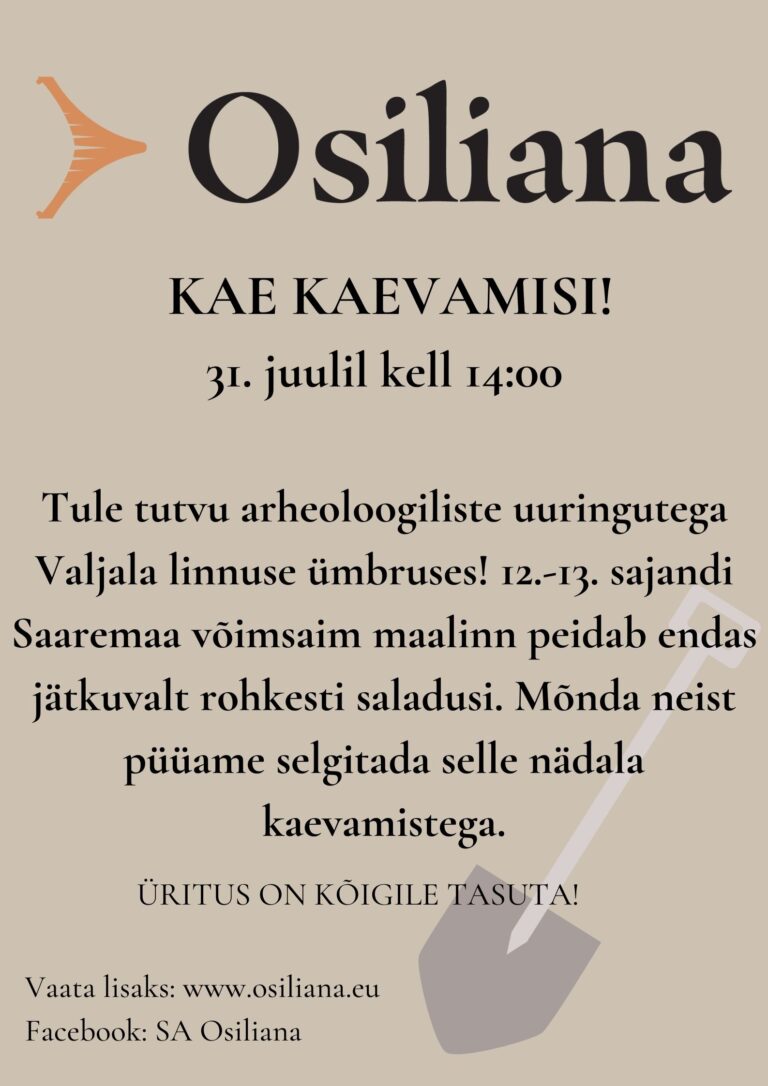 MIS? Arheoloog Marika Mägi räägib vestlusringis enda viimase aja kaevamistest ja uurimistöödest, mis seotud Saaremaaga ning SA Osilianaga.