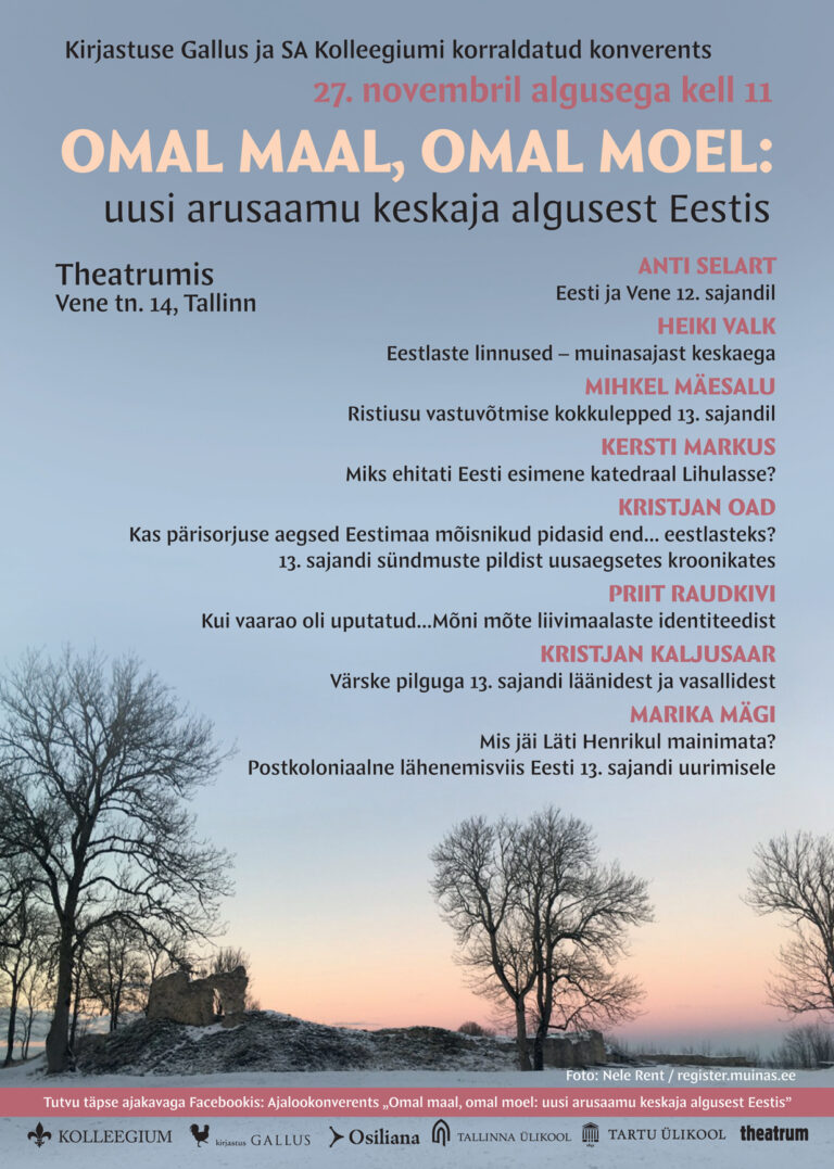 Kirjastus Gallus ja SA Kolleegium kutsuvad konverentsile: “Omal maal, omal moel – Uusi arusaamu keskaja algusest Eestis.” 27. novembril algusega kell 11:00.