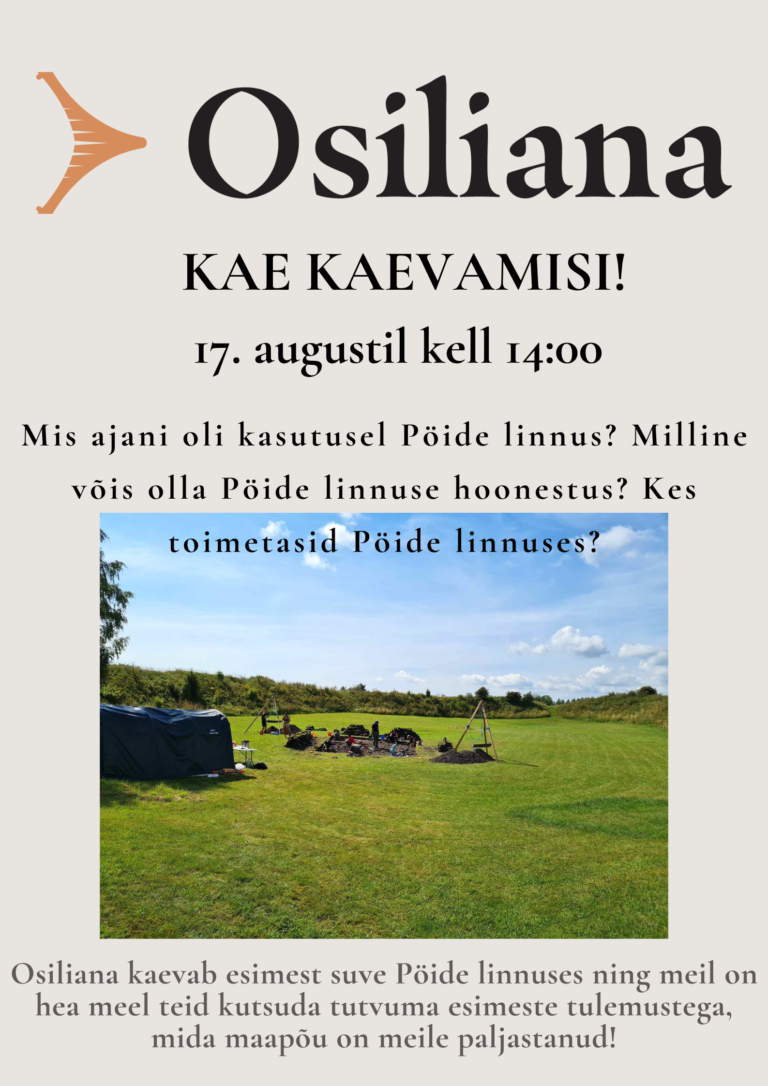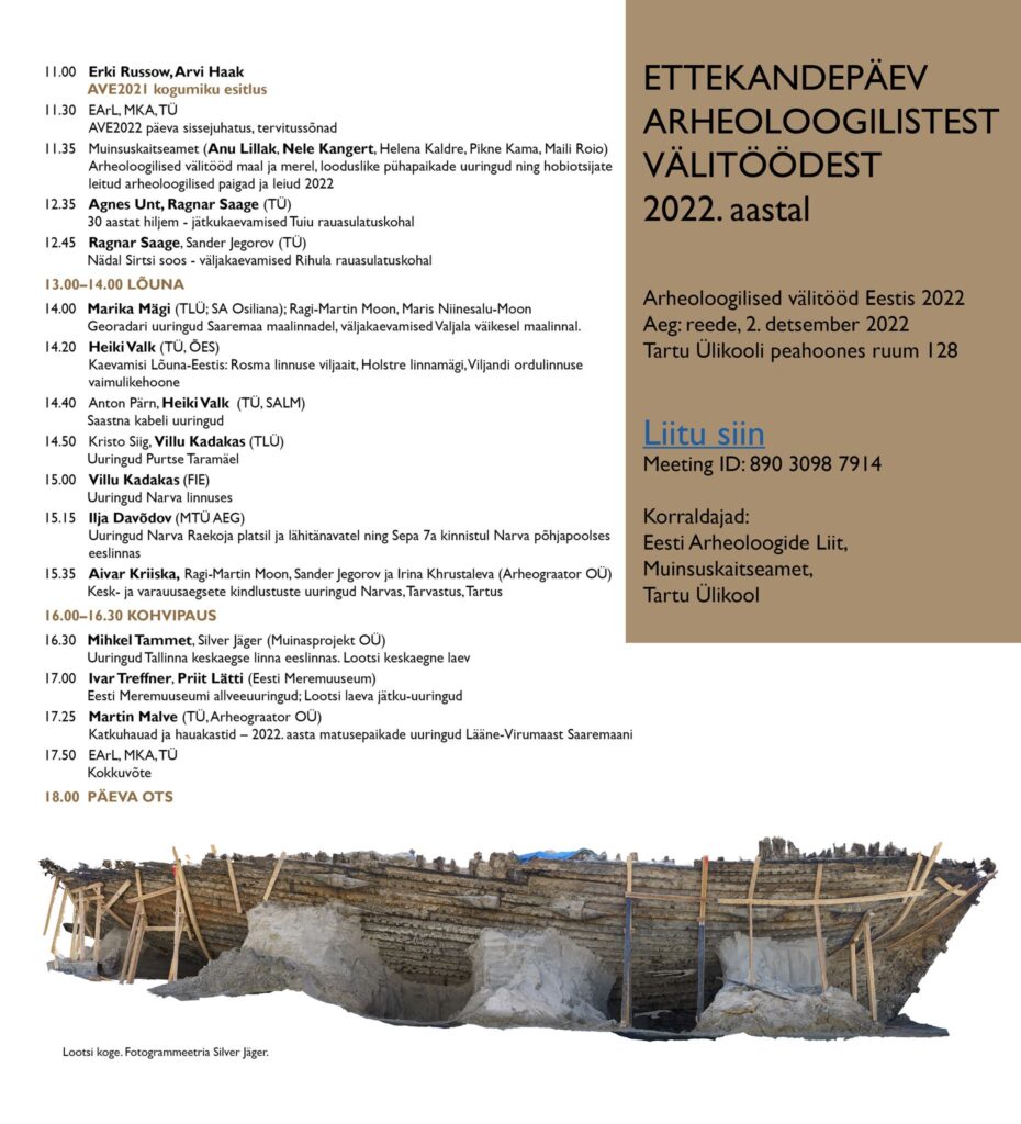 02.12.2022 toimub 2022. aasta arheoloogiliste välitööde ettekandepäev.  Kell 14:00 saab kuulda ka Osiliana tegevustest.