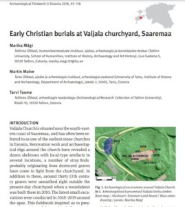 Mägi, M.; Malve, M. & Toome, T. (2019). Early Christian burials at Valjala churchyard, Saaremaa. Archaeological Fieldwork in Estonia, 2018, 93−118.