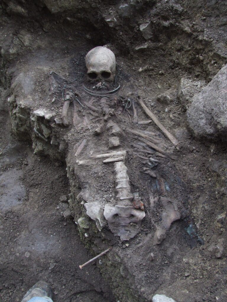 Tema vasak käsivarreluu oli mingil ajal murdunud, kuid õnnelikult paranenud. Ta selgroog oli veidi kõver. Naisele oli antud kaasa väga rohkesti esemeid, millest suur osa olid asetatud selja alla. Tal olid kaasas 12. sajandi rinnanõelad, ülejäänud ehted olid aga täpselt samasugused, kui teistel, 13. sajandisse ja pigem sajandi keskpaika dateeritud maetutel. Ka matmisviis oli üks-ühele sama, mis 13. -14. sajandi matustel. Arvestades naise iga surres võib niisiis öelda, et ta ilmselt maeti ehetega, mis olid moes tema suremise ajal, kuid sai kaasa ka rinnanõelad, nagu neid kanti tema noorusaegadel.