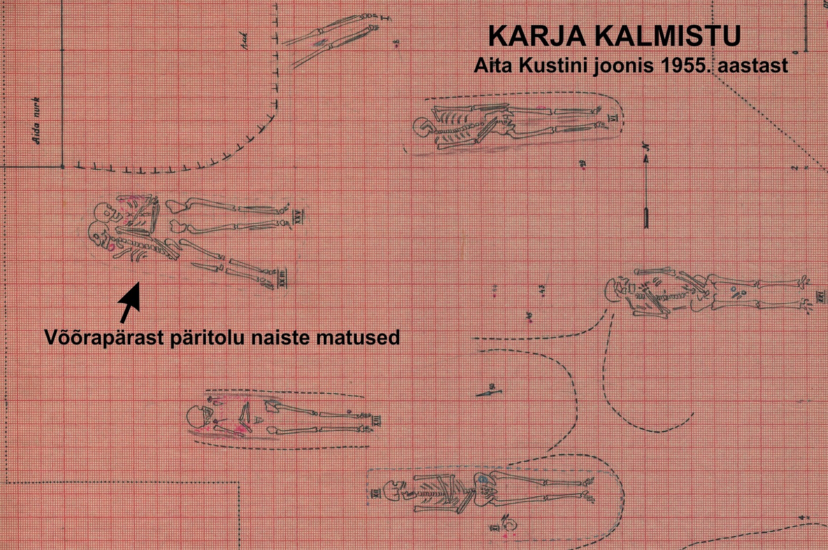 Samast Karja kalmistult leiti kolm kõrvuti asetsevat 13. sajandi esimese poole hauda, milles täiskasvanud mehed, kes aga samuti polnud omavahel lähisugulased. Ühest neist – 20. ja 30. eluaasta vahel surnud mehest Karja XV matuses – valmib kevadeks ka 3D rekonstruktsioon.