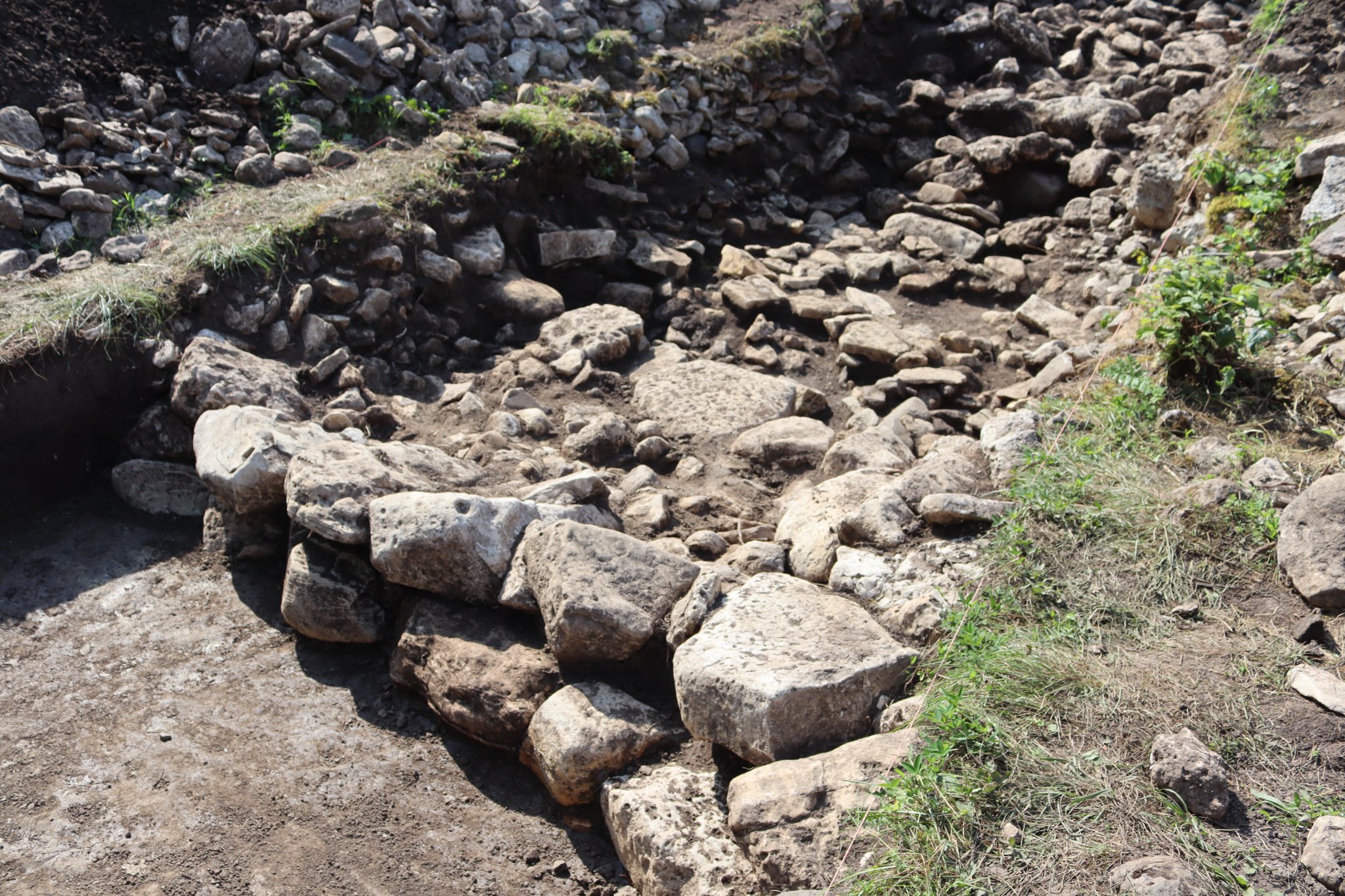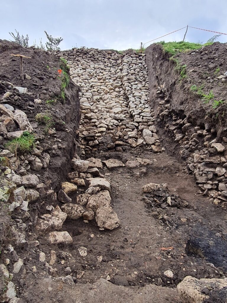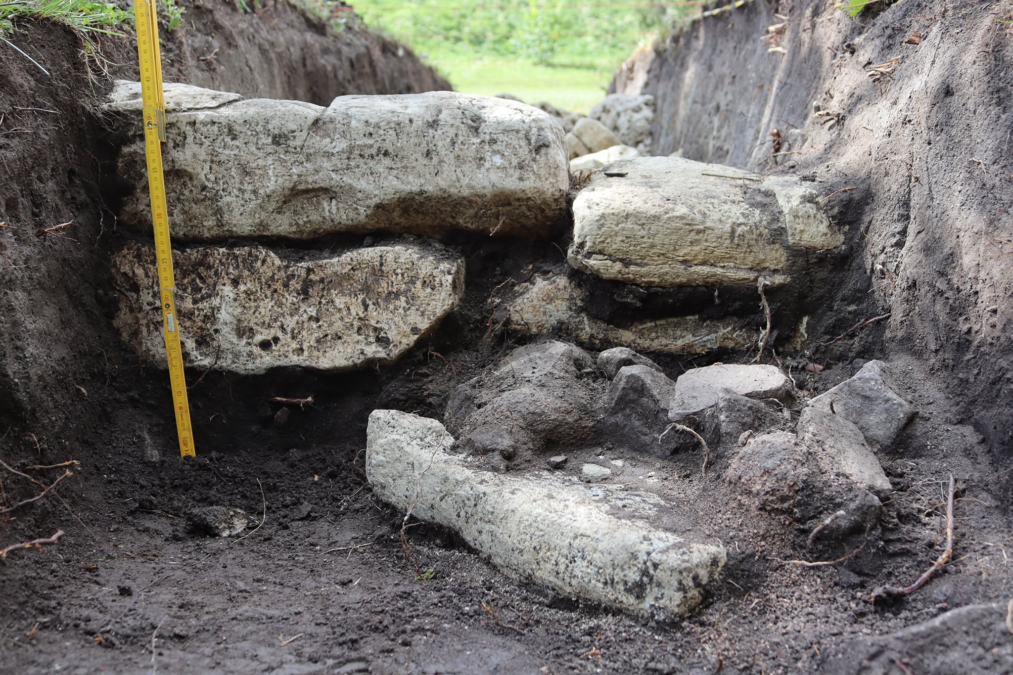 Tuleb välja, et savimullast valli sees on aga veel teine, kividest laotud müür, mida võib näha valli laele tehtud kaevandist. Ilmselt oligi algselt ehitatud kivivall, mis on varasematel kaevamistel paljandunud ka linnuses sees. Seda on mingil ajal tugevdatud väljastpoolt savisest mullast lisavalliga. Suure tõenäosusega leidis see ehitustöö aset 13. sajandil, mil kasutusele tulid katapuldid ja linnust oli vaja kaitsta nendega visatavate suurte kivide eest.