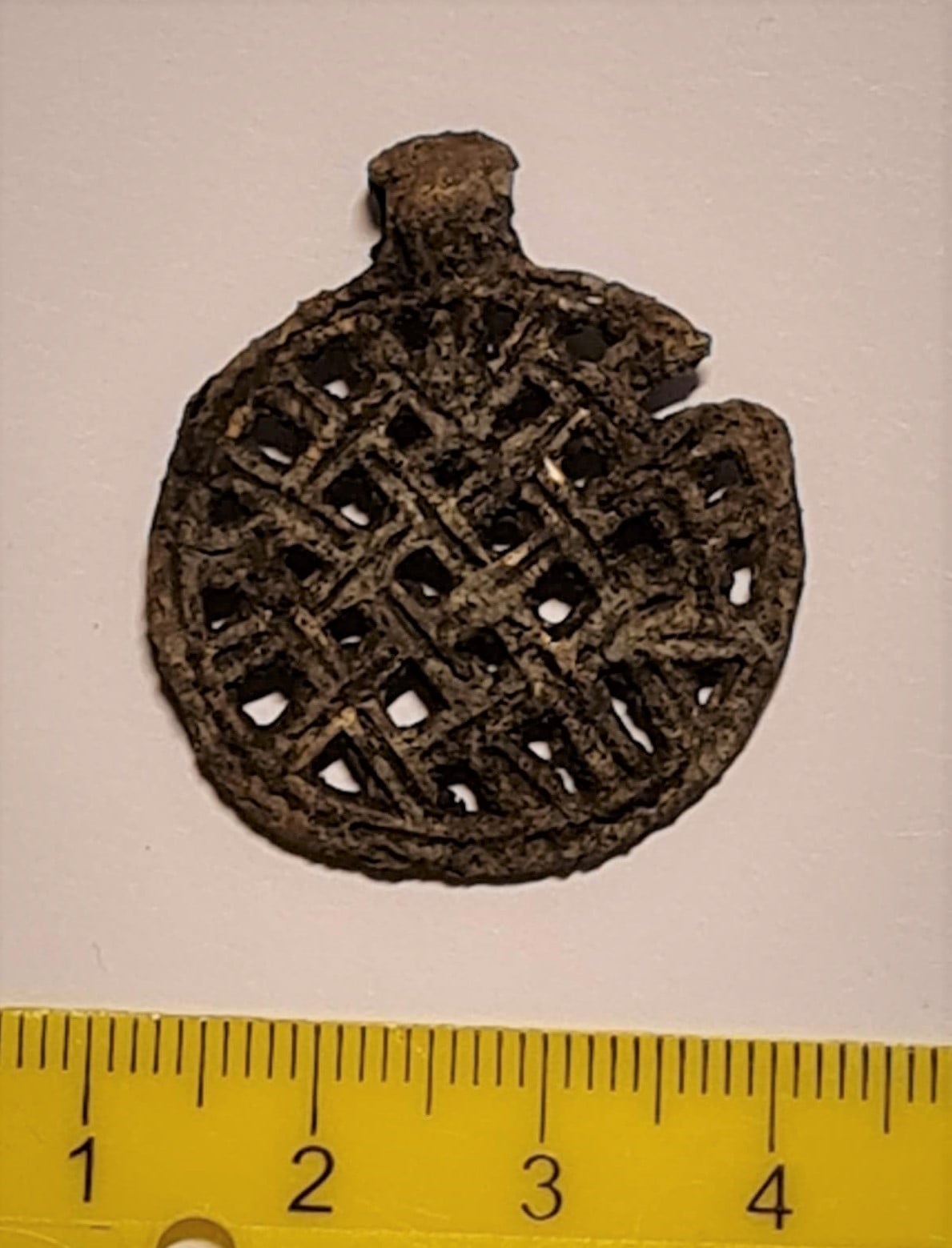 Valjala IV matusest leitud silmusnelinurk. Foto: J. Ratas.