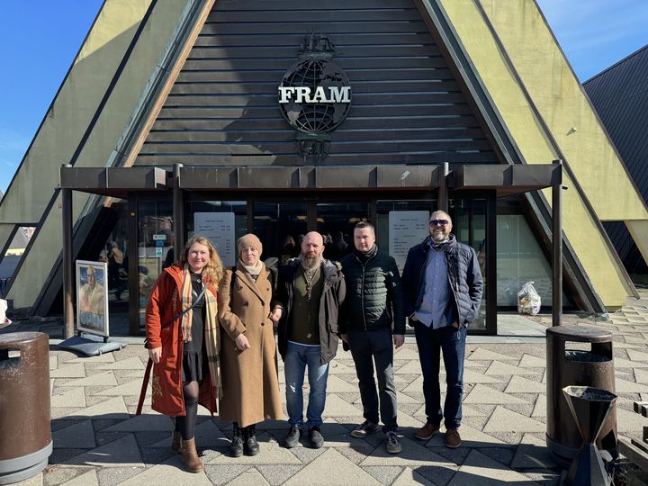 Foto on tehtud aktivistide grupi esimesel inspiratsioonireisil Norra ja Taani muuseumitesse mõni päev tagasi. Vasakult alates on Viikingikeskuse projektijuht Annely Holm, Osiliana juht Marika Mägi, Salme viikingite entusiast Rauno Rahnel, Saaremaa muuseumi värske juht Priit Kivi ja meie disainimeister ja tehnikageenius Kaspar Kaljas firmast Motor.