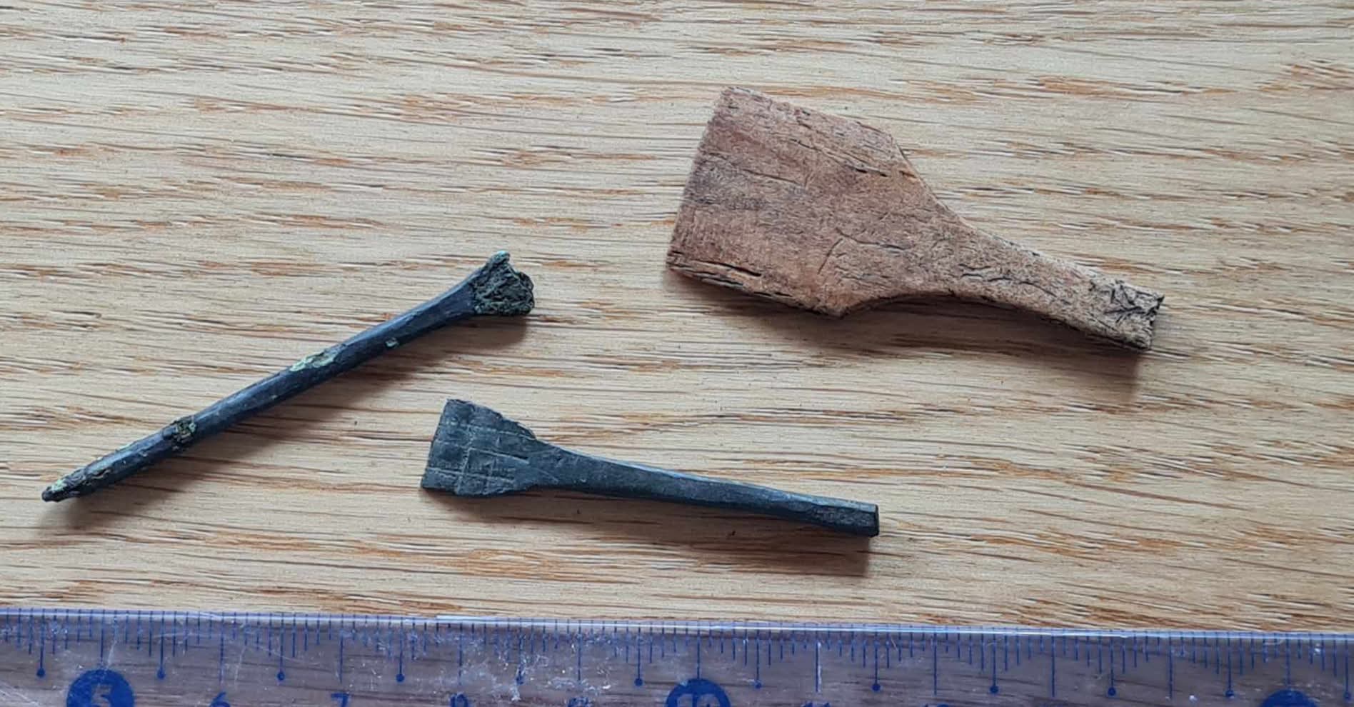Ripatsi läheduses oli ka õhuke pronksnaast ning kahe müüri vahel alumises kultuurkihis ka üks noa katke.