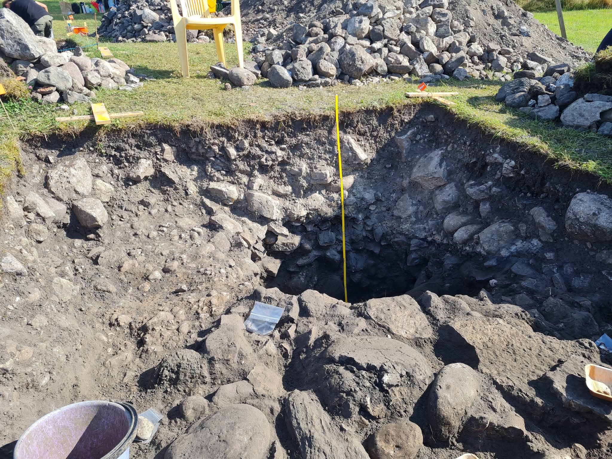 Viimasel nädalal tuli välja 180 cm sügavune auk, mille mõõtmed georadari andmetel võiks olla 2 x 2 m. Süvend oleks justnagu mingi hilisema, linnuses keskel kohal paiknenud hoone nurgas. Kelder? Või ikkagi kaev, mis jäi ehk lõpuni ehitamata? Katsume selgust saada 2025. aastal.