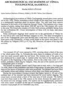Mägi, M. (2005). On the mutual relationship between late prehistoric Saaremaa and the Livs. In: Mäntylä, S. (Ed.). Rituals and relations. Studies on the Society and Material Culture of the Baltic Finns (187−206). Helsinki: Academia Scientiarum Fennica. (Suomalaisen Tiedeakatemian toimituksia. Humaniora; 336).