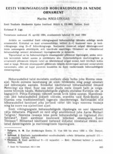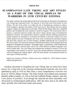 Jets, I. (2012). Scandinavian Late Viking Age Art Styles as a Part of the Visual Display of Warriors in 11th Century Estonia. Estonian Journal of Archaeology, 16 (2), 118−139. DOI: 10.3176/arch.2012.2.02.