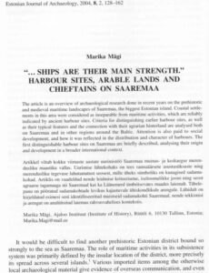 Mägi, M. (2025). Valjala – tugevaim linn Saaremaa muude linnade seas. Pesti, O. (Toim.). Saaremaa muuseum kaheaastaraamat 2023-2024. (3−33). Kuressaare: SA Saaremaa Muuseum väljaanne.