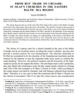 Markus, K. (2017). From Rus’ Trade to Crusade: St Olaf’s Churches in the Eastern Baltic Sea Region. Acta Historica Tallinnensia, 23, 3−25. DOI: 10.3176/hist.2017.1.03.