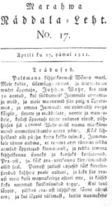 Marahwa Näddala-Leht, Number 17, 27 Aprill 1821.
