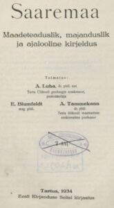 Toimetaja: Artur Luha, August Tammekann, Evald Blumfeldt. (1934). Saaremaa: maadeteaduslik, majanduslik ja ajalooline kirjeldus. Tartu: Eesti Kirjanduse Selts. Kodu-uurimise toimkond.